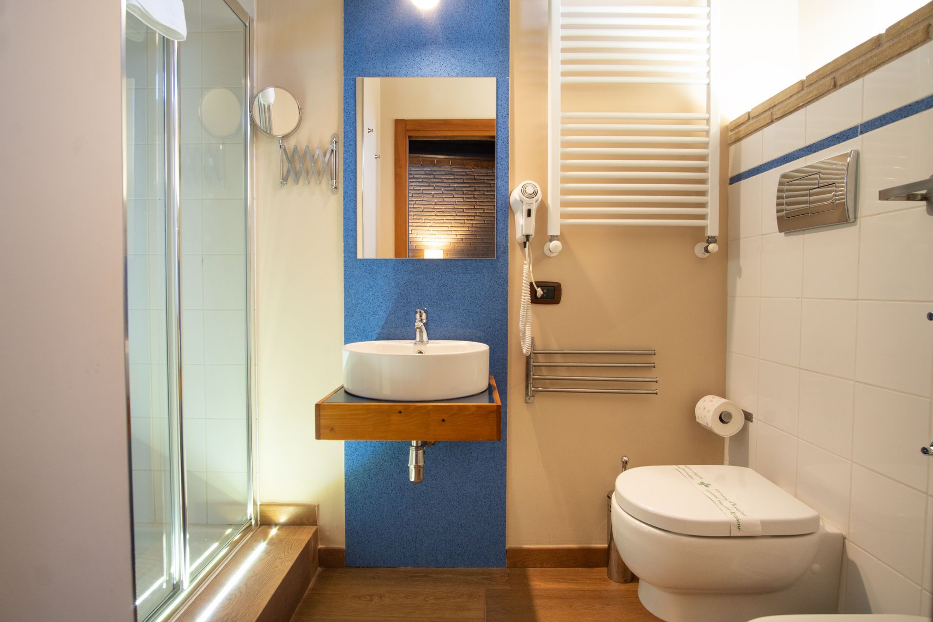A large closet with built-in safe ensures your peace of mind and safety during your stay. The private bathroom is complete with an invigorating shower and a bidet, very soft towels and a courtesy kit for the shower are provided.